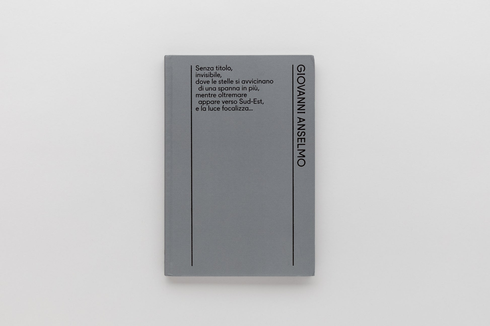 “Senza titolo, invisibile, dove le stelle si avvicinano di una spanna in più, mentre oltremare appare verso Sud-Est, e la luce focalizza… Il titolo esteso dell’esposizione di Venezia, come molto spesso accade negli interventi di Giovanni Anselmo, è una lunga sequenza, quasi un piccolo racconto che descrive le opere che s’incontreranno. Soprattutto, però, è una successione di paesaggi che, come finestre, si aprono alla nostra immaginazione. […] In ogni suo lavoro Anselmo mostra come ogni cosa si trasformi, si rinnovi e si completi in relazione con l’ambiente in cui si trova a essere; perché le opere diventano, come ha scritto Germano Celant, ‘viandanti solitari che si adattano alle metamorfosi ambientali, tanto da assorbirne gli umori e l’humus.’”